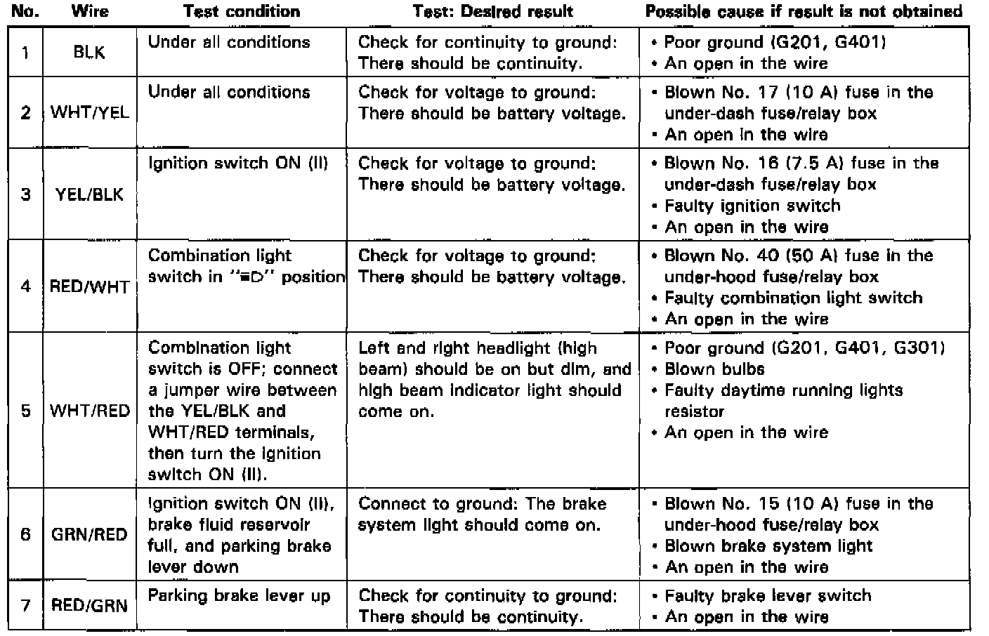 DAYTIME RUNNING LIGHTS CONTROL UNIT / INPUT TESTCAUTION:
