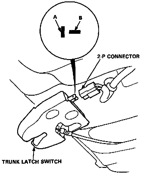 LATCH SWITCH / TEST AND REPLACEMENT (SEDAN)1. Open the trunk lid, and disconnect the 2-P connector from the trunk latch switch.