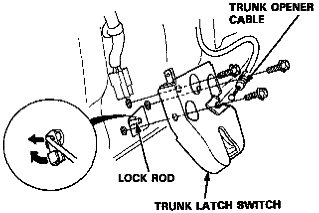 3. If necessary, remove the three mounting bolts to pull out the trunk latch switch from the trunk lid, then disconnect the lock rod from the trunk latch switch.