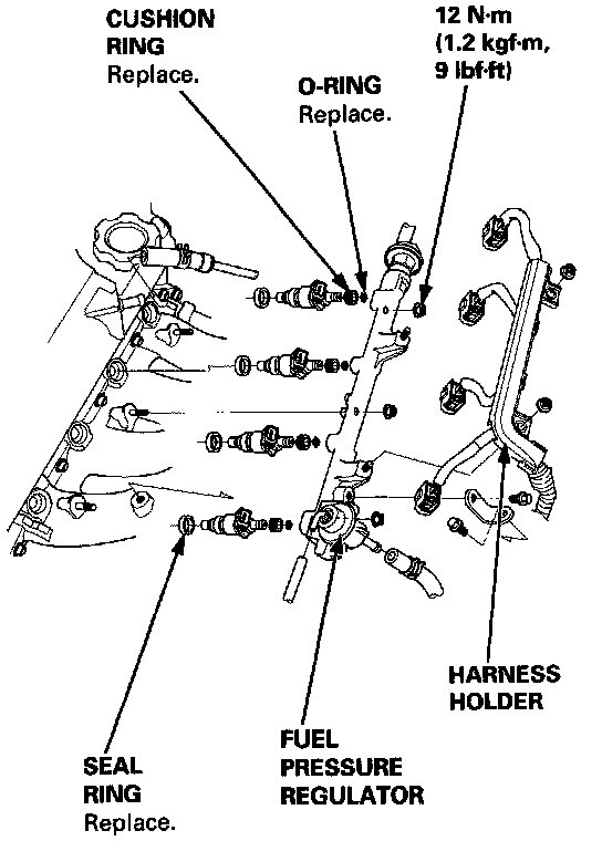 8. Coat new 0-rings with clean engine oil, and put them on the fuel injectors.