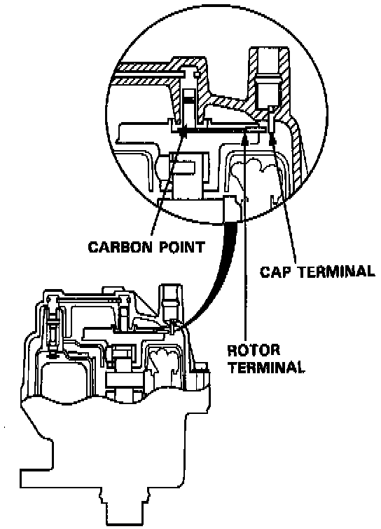 DISTRIBUTOR TOP END / INSPECTION1. Check for rough or pitted rotor and cap terminals.