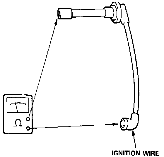 3. If resistance exceeds 25 K Ohms, replace the ignition wire.