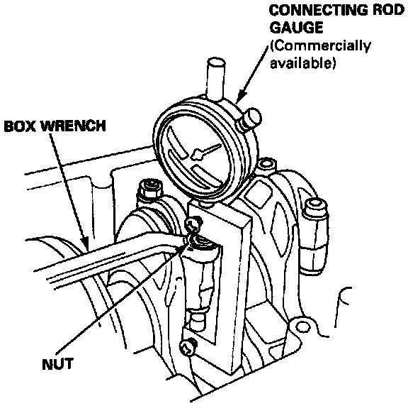 Tighten the nut until the connecting rod gauge reads 0.13 - 0.15 mm (0.005 - 0.006 in.)