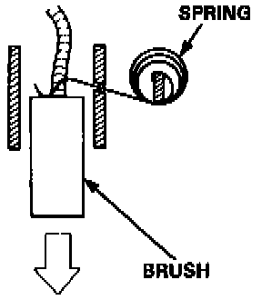 2. Install the armature in the housing. Next pry back each brush spring again and push the brush down until it seats against the commutator, then release the spring against the end of the brush.