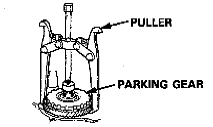 11. Using a universal two jaw puller, remove the parking gear, one-way clutch and countershaft 1st gear assembly.