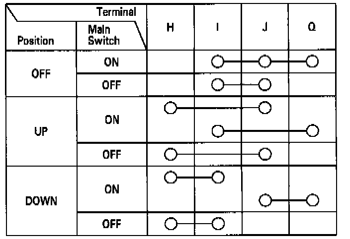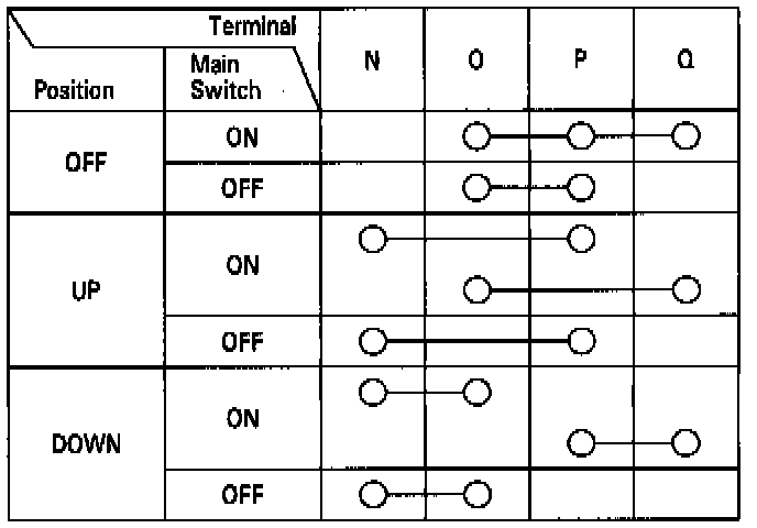 3. Check for continuity between the terminals in each switch position according to the tables.