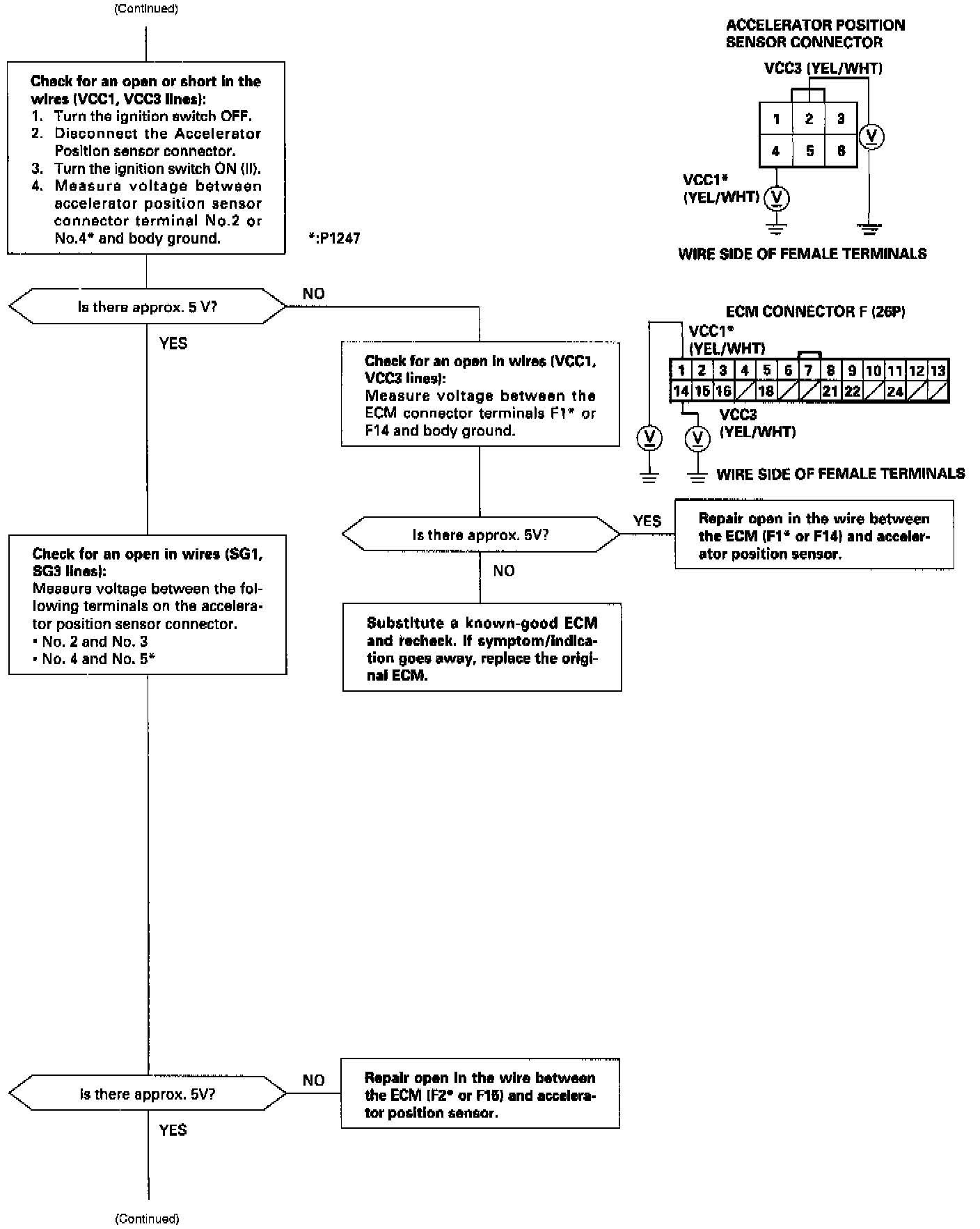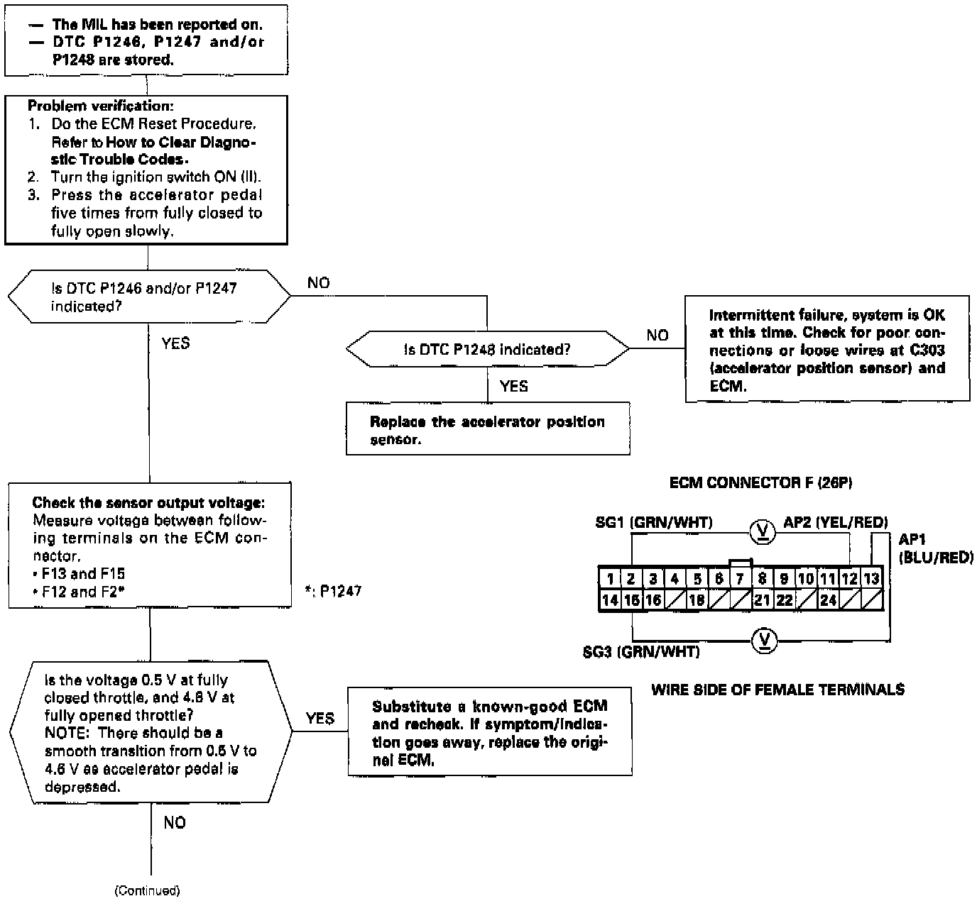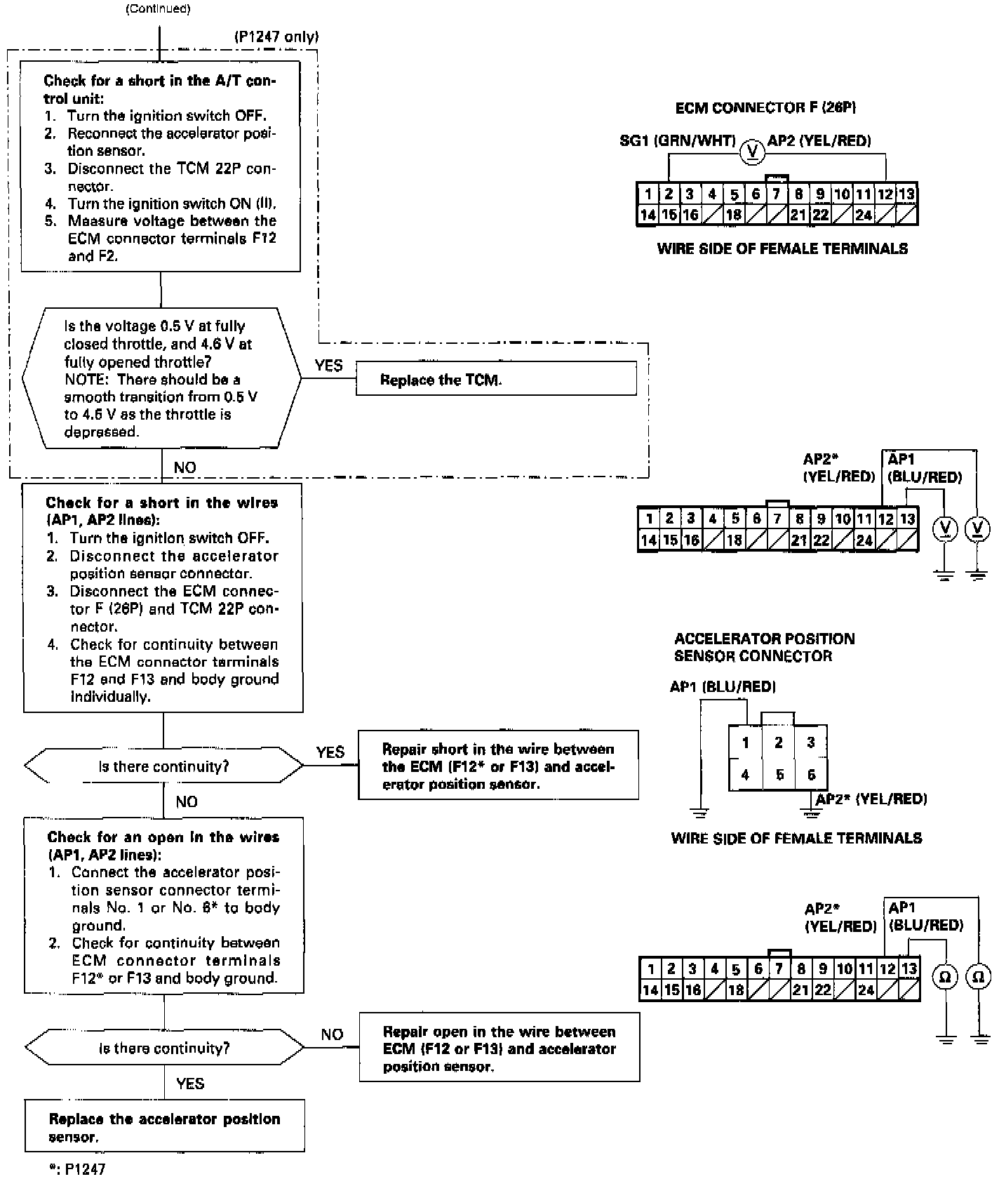 - The scan tool indicates Diagnostic Trouble Code (DTC) P1247: A malfunction in the Accelerator Position Sensor P1247 2 circuit.