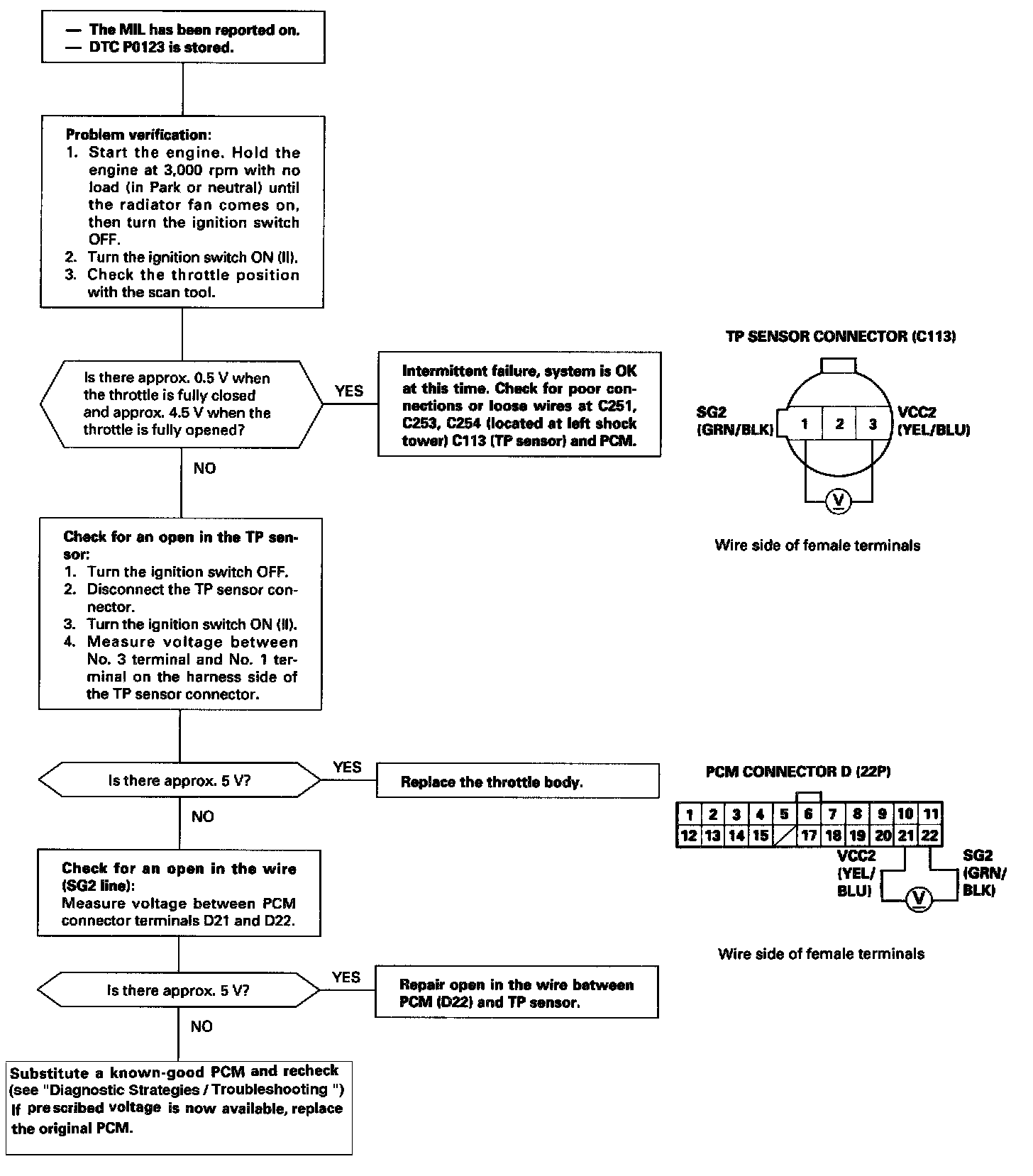 The scan tool indicates Diagnostic Trouble Code (DTC) P0123: