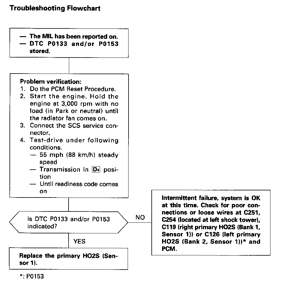 NOTE: If DTC P0131, P0132 and/or P0135 are stored at the same time as DTC P0133, troubleshoot those DTCs first, then troubleshoot DTC P0133.