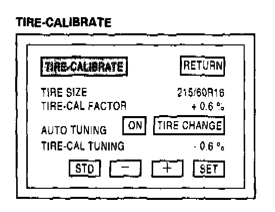 If the tire-cal factor has been reset, touching the tire size will return the tuning value to the standard value.