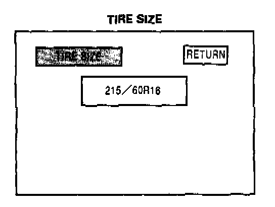 When you touch "TIRE CHANGE," the display will change to the TIRE SIZE screen. This screen is rarely used because only the standard tire size is listed.