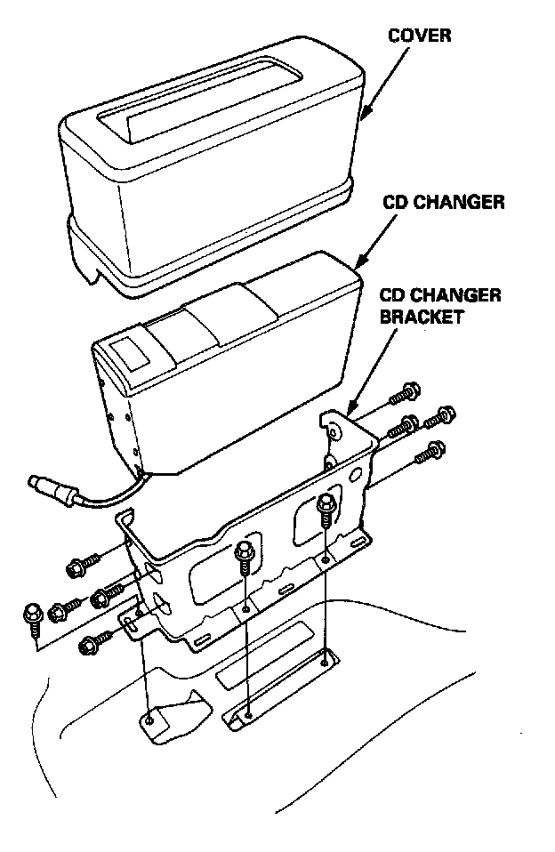 3. Remove the CD changer bracket mounting bolts, then remove the CD changer and bracket.