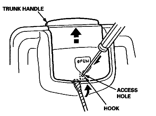 3. While pressing the hook, pry the trunk handle up with a flat-tip screwdriver.