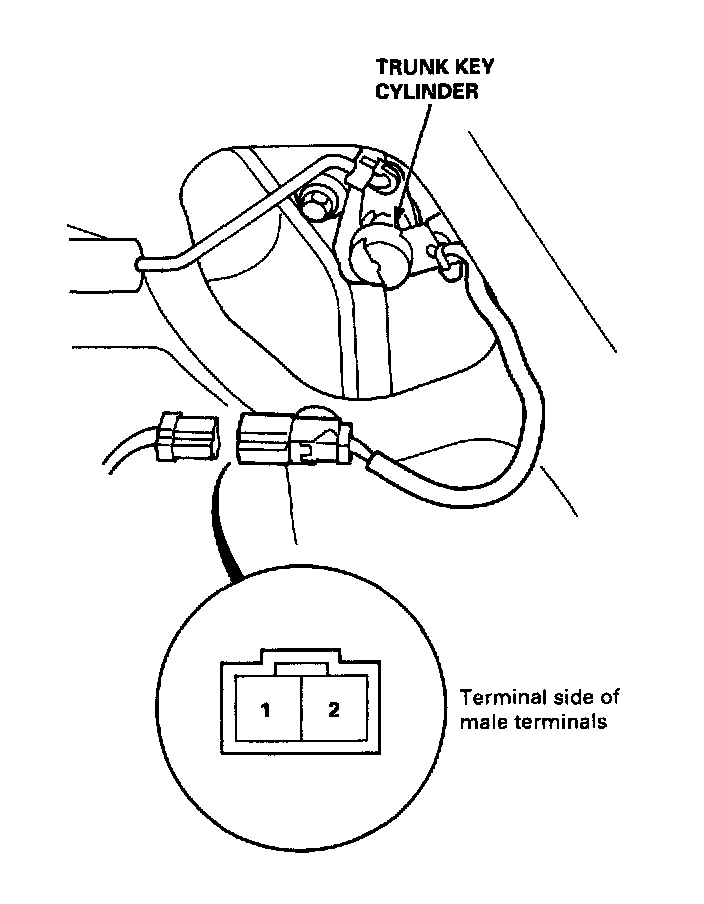 - There should be continuity when the trunk key cylinder is turned to UNLOCK with the key.