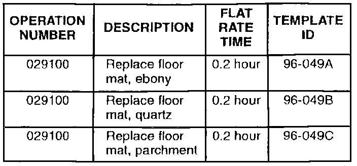 Replace the front floor mat. The driver's side floor mat is now available separately so you do not have to replace the complete set (see PARTS INFORMATION).