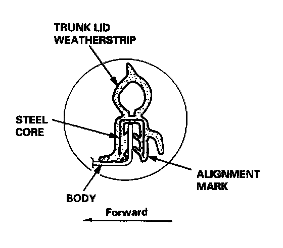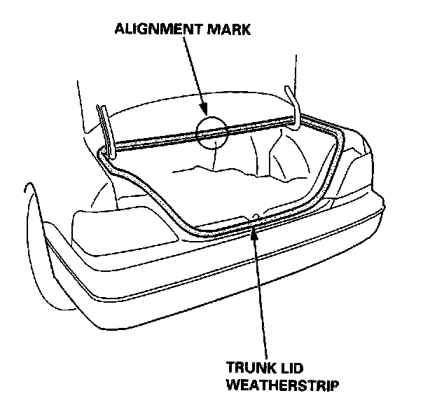 When installing the trunk lid weatherstrip, align it with the alignment mark on the trunk lid opening.