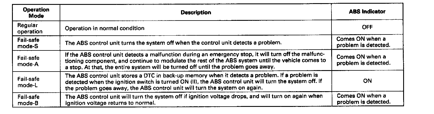 1. The ABS control unit is equipped with a main CPU and a sub CPU, that check each other for problems.