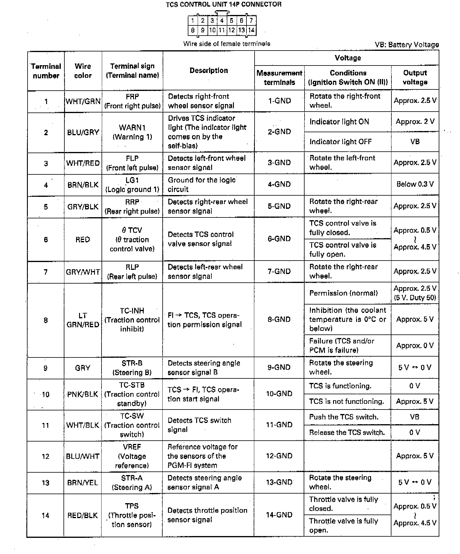 Pinout Values and Diagnostic Parameters