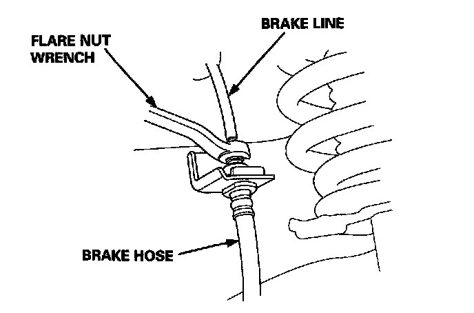 2. Disconnect the brake hose from the brake line using a 10 mm flare nut wrench.