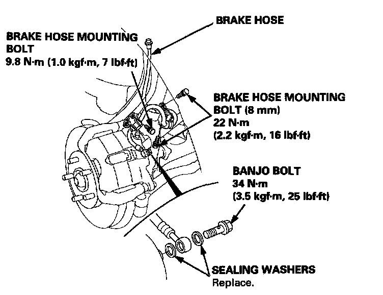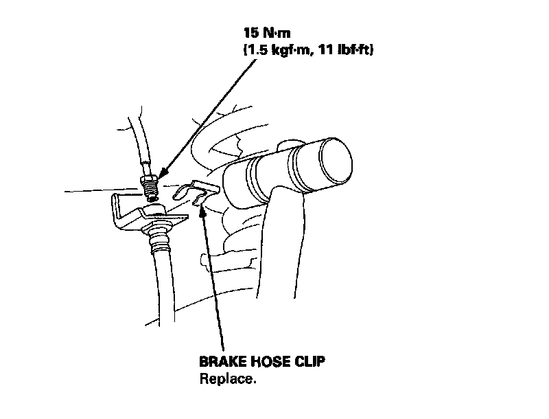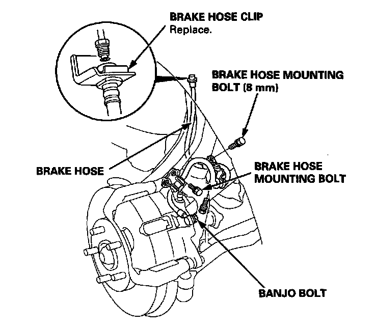 - Check the brake hose and line joint for leaks, and tighten if necessary.