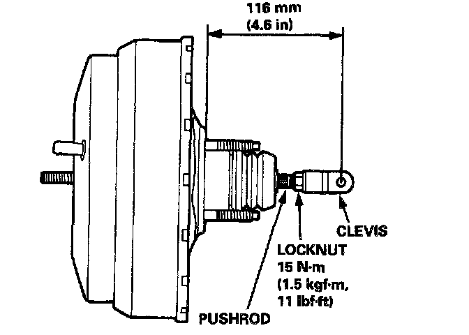 7. Adjust the pushrod length as shown if the booster, if the booster is removed.