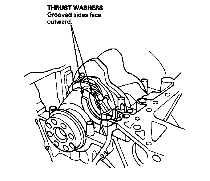 3. Install the thrust washers on the No. 3 journal. Oil the thrust washer surfaces.