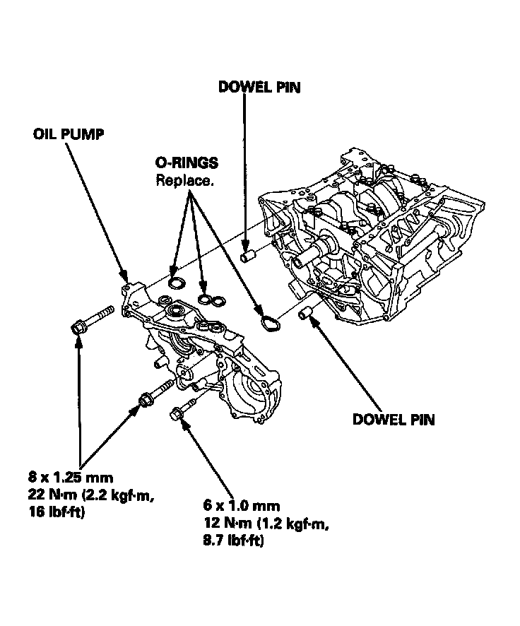 12. Install the oil pump with new O-rings.