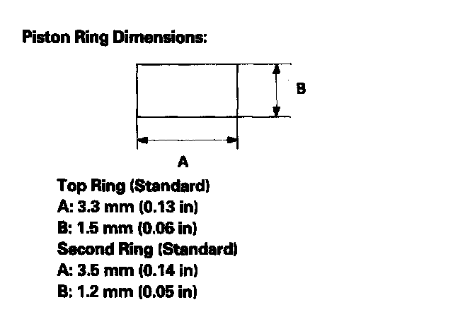 - Top ring groove is 1.5 mm (0.06 inch) wide, the second ring groove is 1.2 mm (0.05 inch) wide, and the oil ring groove is 2.8 mm (0.11 inch) wide.
