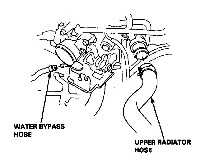 10. Remove the upper radiator hose and water bypass hose.