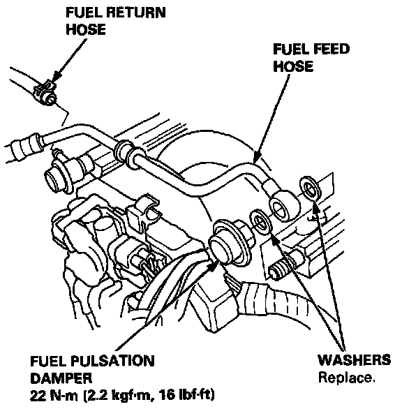 15. Remove the fuel feed hose and fuel return hose.