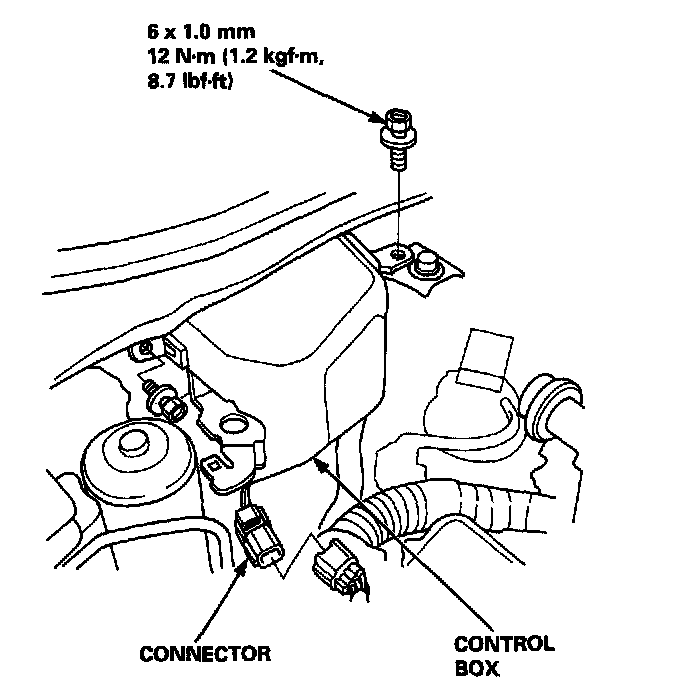 17. Disconnect the connector, then remove the control box.