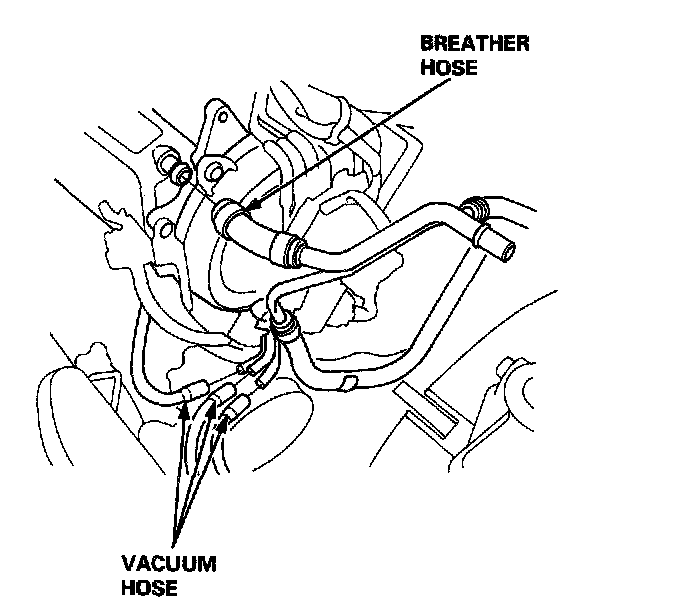 21. Remove the vacuum hoses and breather hose.