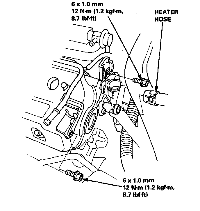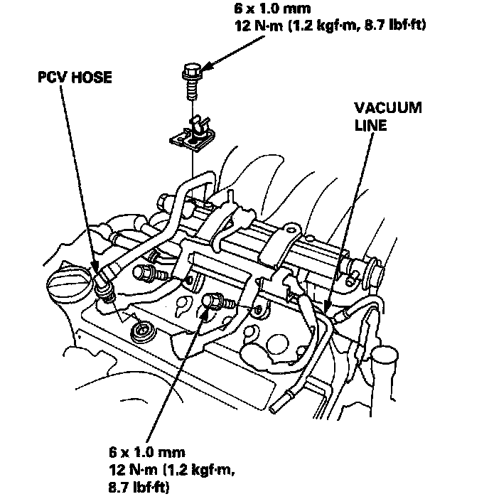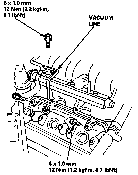 25. Remove the vacuum line mounting bolts from the right cylinder head cover and intake manifold.