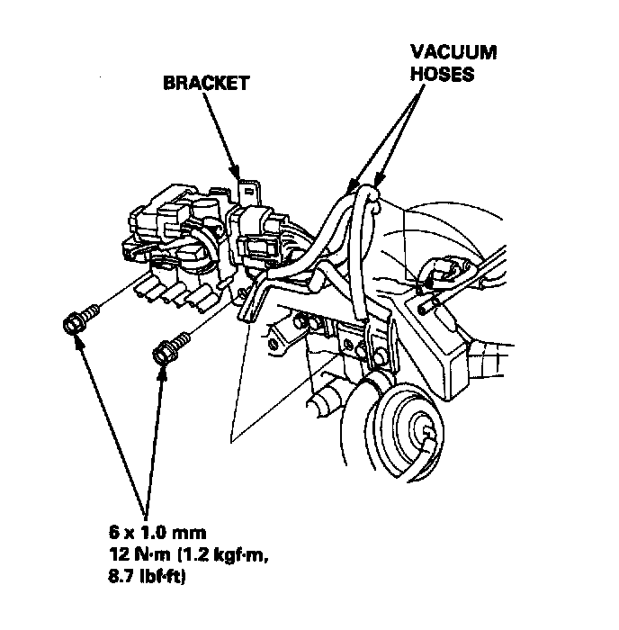 22. Remove the vacuum hoses, then remove the ignition control module (ICM) bracket.