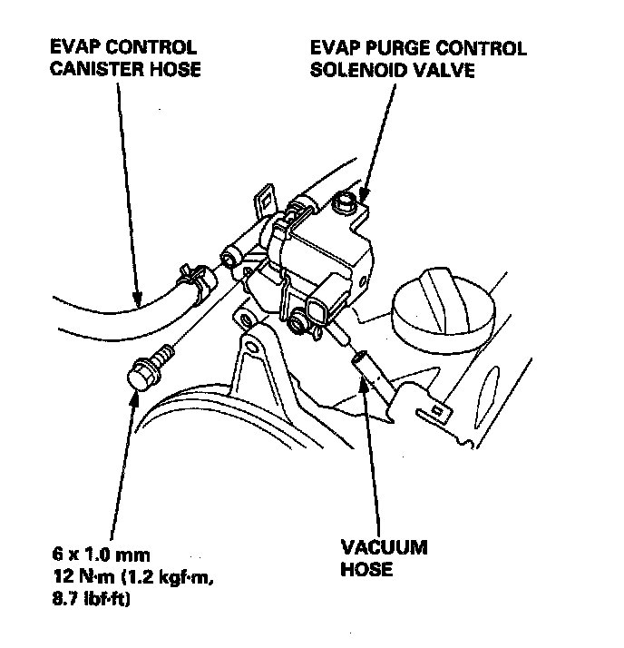 32. Remove the EVAP canister hose, EVAP purge solenoid valve and vacuum hose.