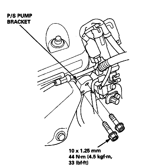 39. Remove the two bolts securing the P/S pump bracket.