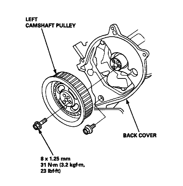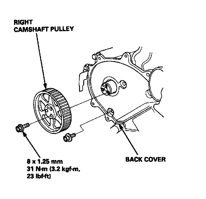 40. Remove the left and right camshaft pulleys, then remove the back covers.