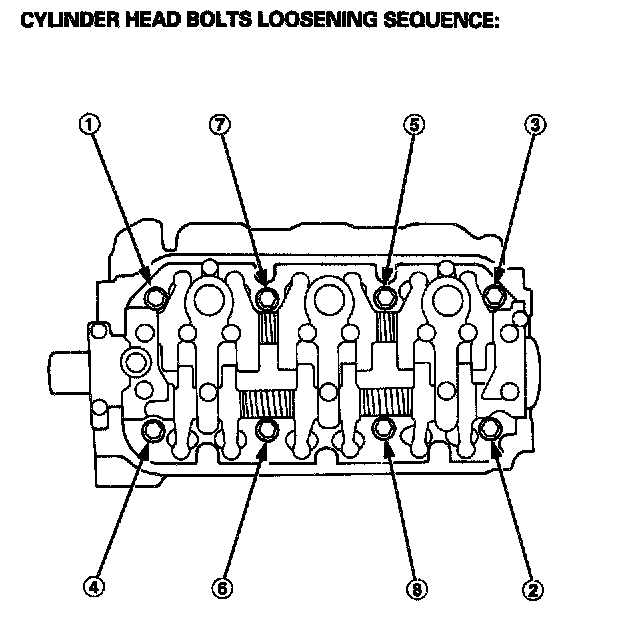 CAUTION: To prevent warpage, unscrew the bolts in sequence 1/3 turn at a time; repeat the sequence until all bolts are loose.