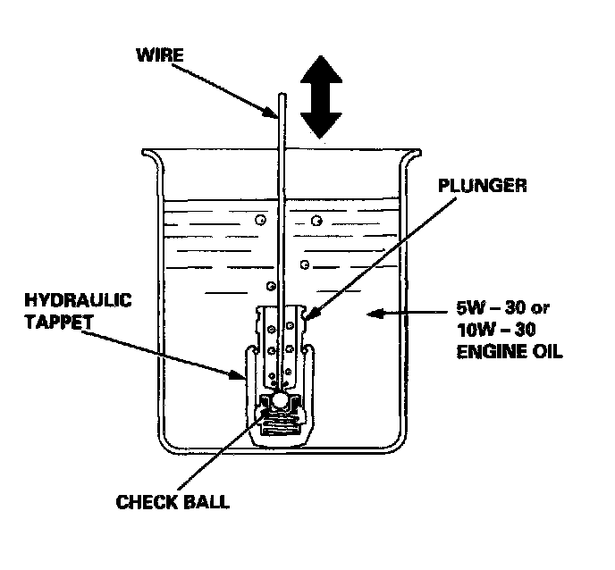 Bleeding1. Fill a container with 5W-30 or 10W-30 engine oil, and place the hydraulic tappet in it. Press down on the check ball with a thin wire. Bleed the tappet of air by pumping the plunger slowly until no bubbles come out of the hydraulic tappet.