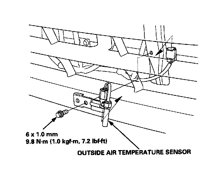 Disconnect the connector from the outside temperature sensor, then remove the bolt and the outside air temperature sensor.