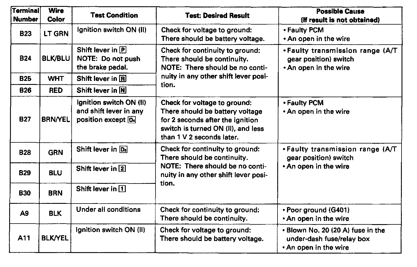 Transmission Shift Position Indicator Lamp: Testing and Inspection