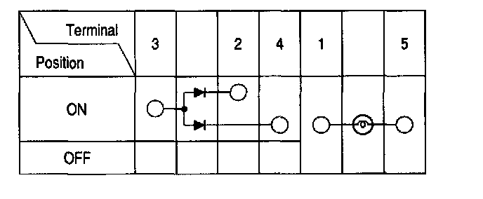3. Check for continuity between the terminals in each switch position according to the table.