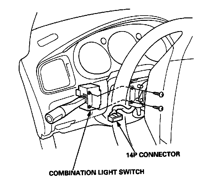 3. Disconnect the 14P connector from the combination light switch, then remove the two screws and the switch.