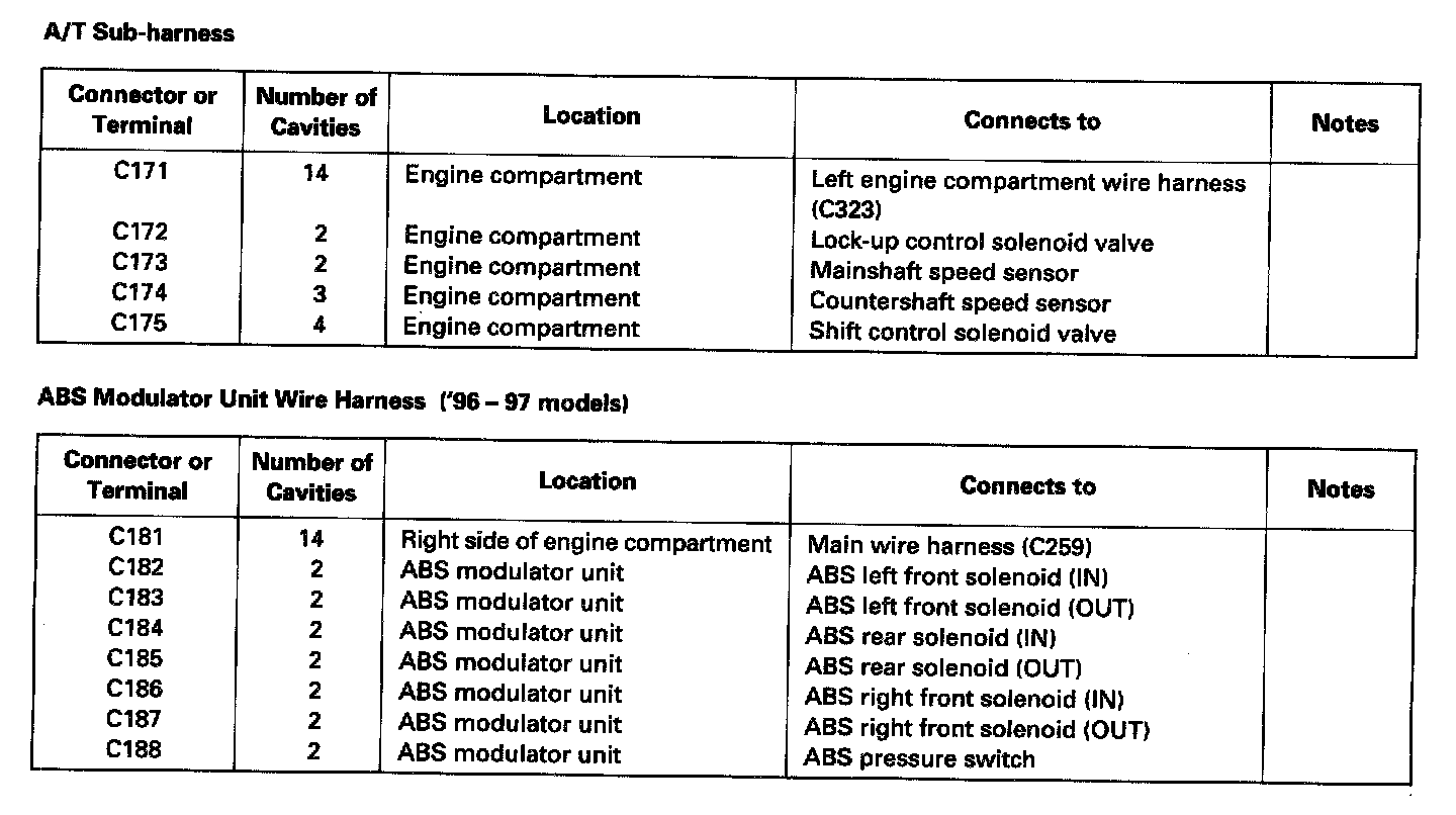 A/T Sub-harness, ABS Modulator Unit Wire Harness('96-97 Models) - Index: