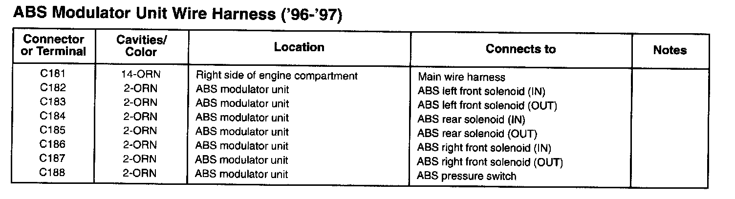 ABS Modulator Unit Wire Harness ('96-'97):