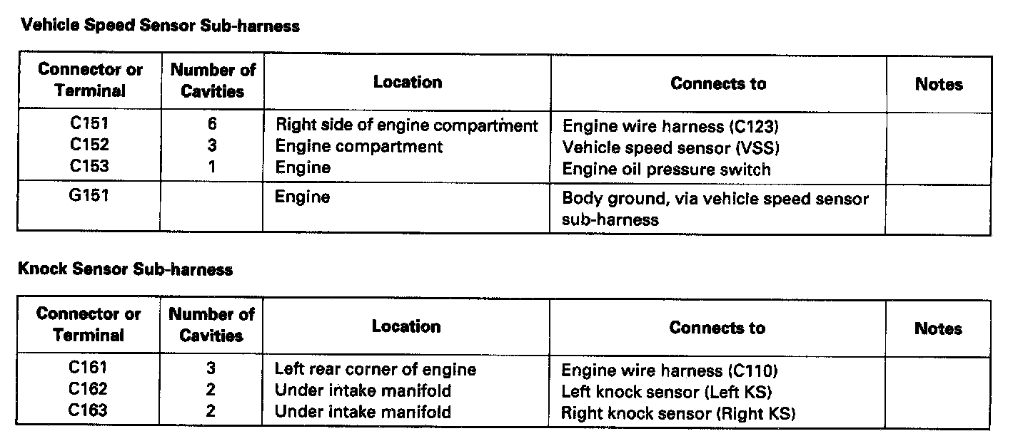 Vehicle Speed Sensor/Knock Sensor Sub-harness - Index: