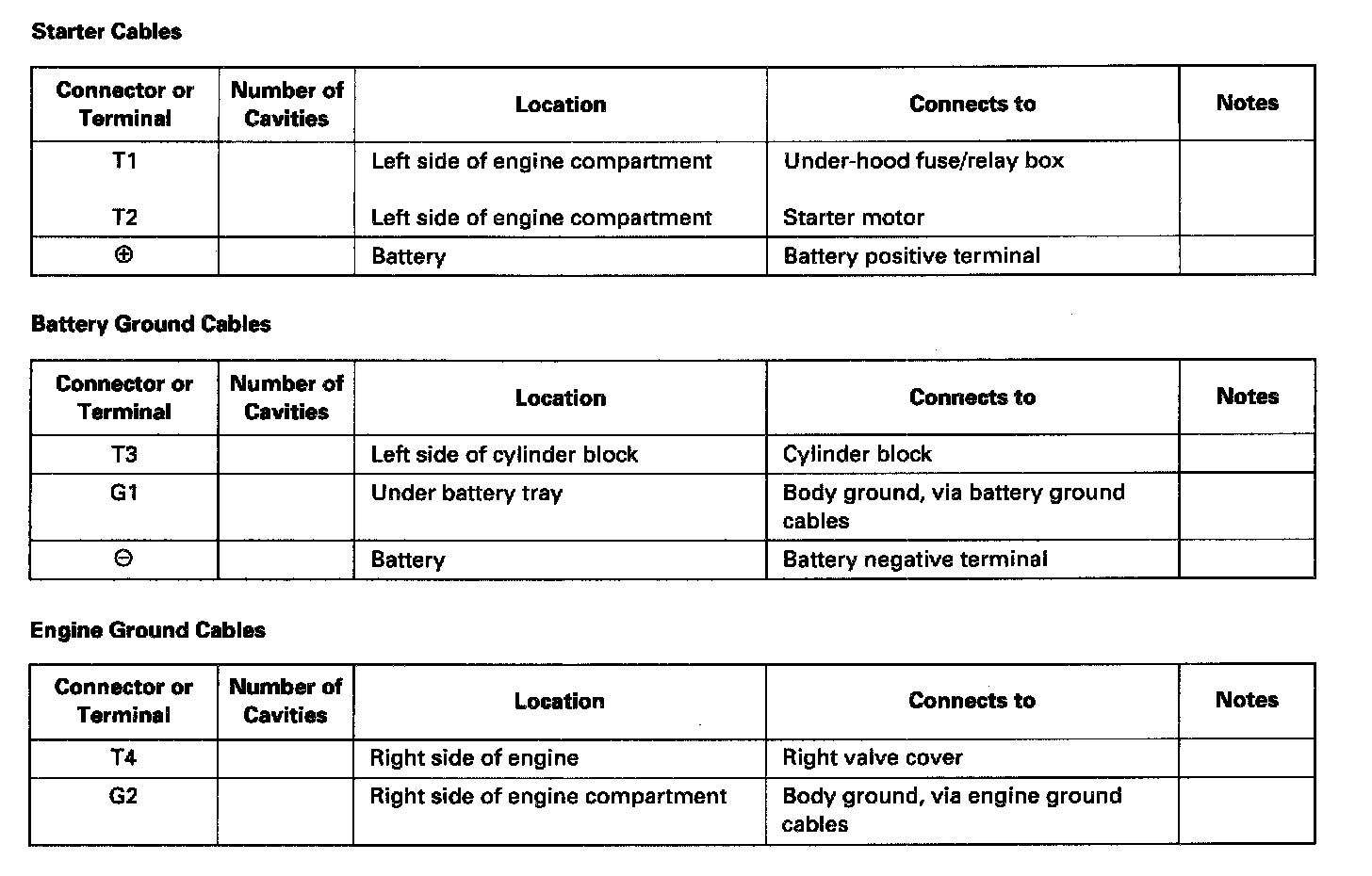 Starter/Battery Ground/Engine Ground Cables - Index: