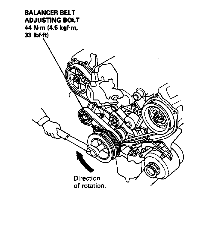 - Inspect the balancer belt before adjusting the belt tension.