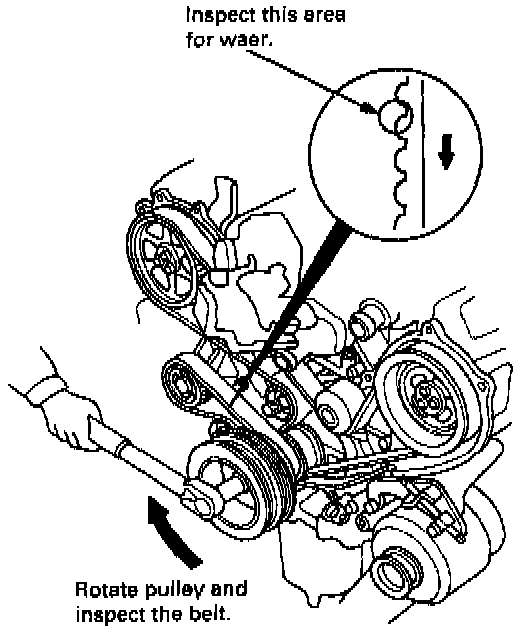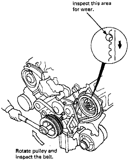 14. Inspect the balancer belt for cracks and oil or coolant soaking.