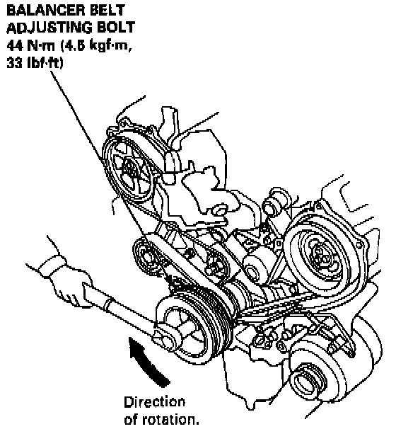 - Inspect the balancer belt before adjusting the belt tension